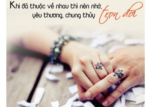 Vợ chồng không chỉ là cái duyên mà còn là cái số. Đâu phải cứ yêu nhau là đến được với nhau? Quyết định đến với hôn nhân, xây dựng cuộc sống gia đình, làm vợ làm chồng đâu phải là chuyện dễ dàng, ngày một ngày hai. Chúng ta yêu nhau và chúng ta cưới nhau. Yêu nhau mới về chung sống trong một mái nhà. Khi đã thuộc về nhau thì nên nhớ, trọn đời yêu thương, chung thủy.